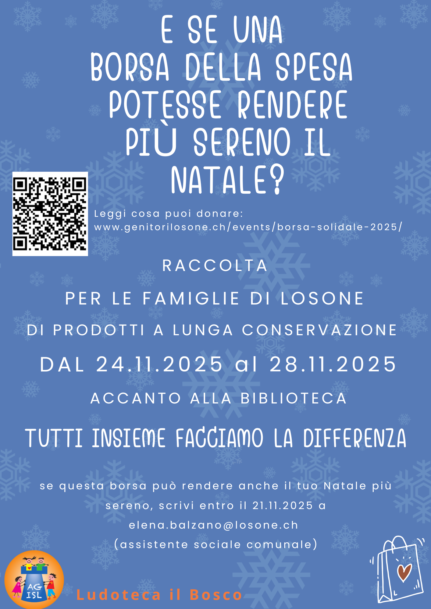 Anche nella nostra comunità vivono famiglie che attraversano momenti di difficoltà finanziaria. Insieme possiamo contribuire a rendere più sereno il loro Natale. Durante la settimana dal 24.11 al 28.11, raccoglieremo…
